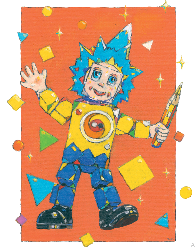 Знакомимся с тем, как из простых геометрических форм можно создать образ персонажа. Учимся передавать характер, эмоции и даже движения, используя круги, квадраты, треугольники и цвет